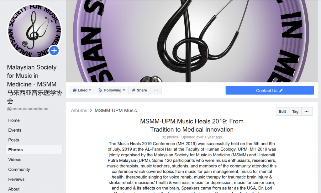 The Music Heals 2019 Conference (MH 2019) was successfully held on the 5th and 6th of July, 2019 at the AL-Farabi Hall at the Faculty of Human Ecology, UPM. MH 2019 was jointly organised by the Malaysian Society for Music in Medicine (MSMM) and Universiti Putra Malaysia (UPM).