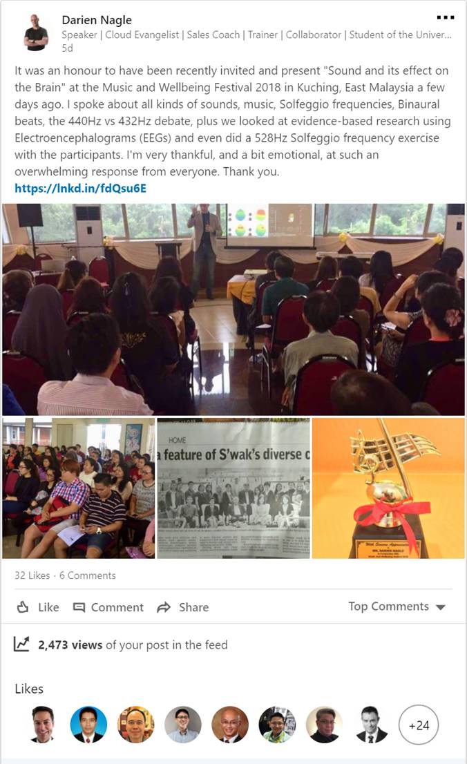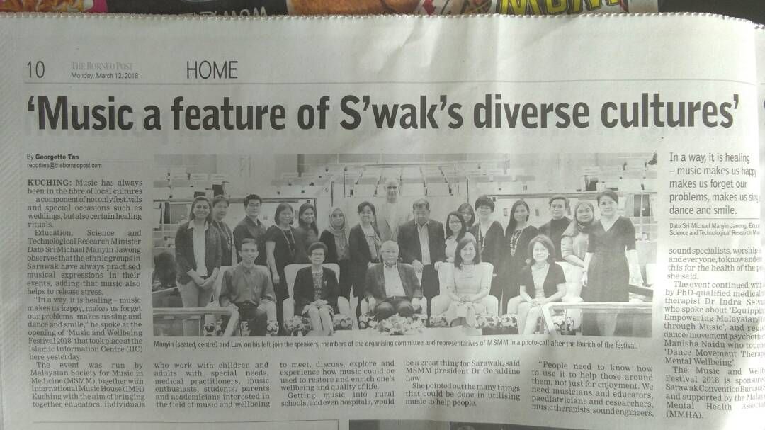 "The event was run by Malaysian Society for Music in Medicine (MSMM), together with International Music House (IMH)Kuching with the aim of bringing together educators, individuals who work with children and adults with special needs, medical practitioners, music enthusiasts, students, parents and academicians interested in the field of music and wellbeing to meet, discuss and explore and experience how music could be used to restore and enrich one's wellbeing and quality of life.