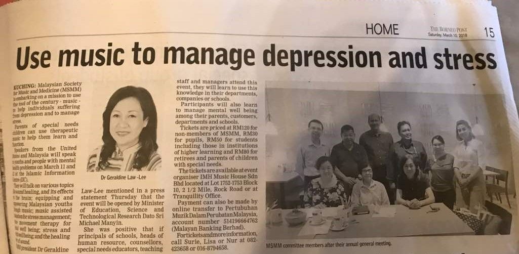"Malaysian Society for Music and Medicine (MSMM) is embarking on a mission to use the tool of the century - music - to help individuals suffering from depression and to manage stress ...""